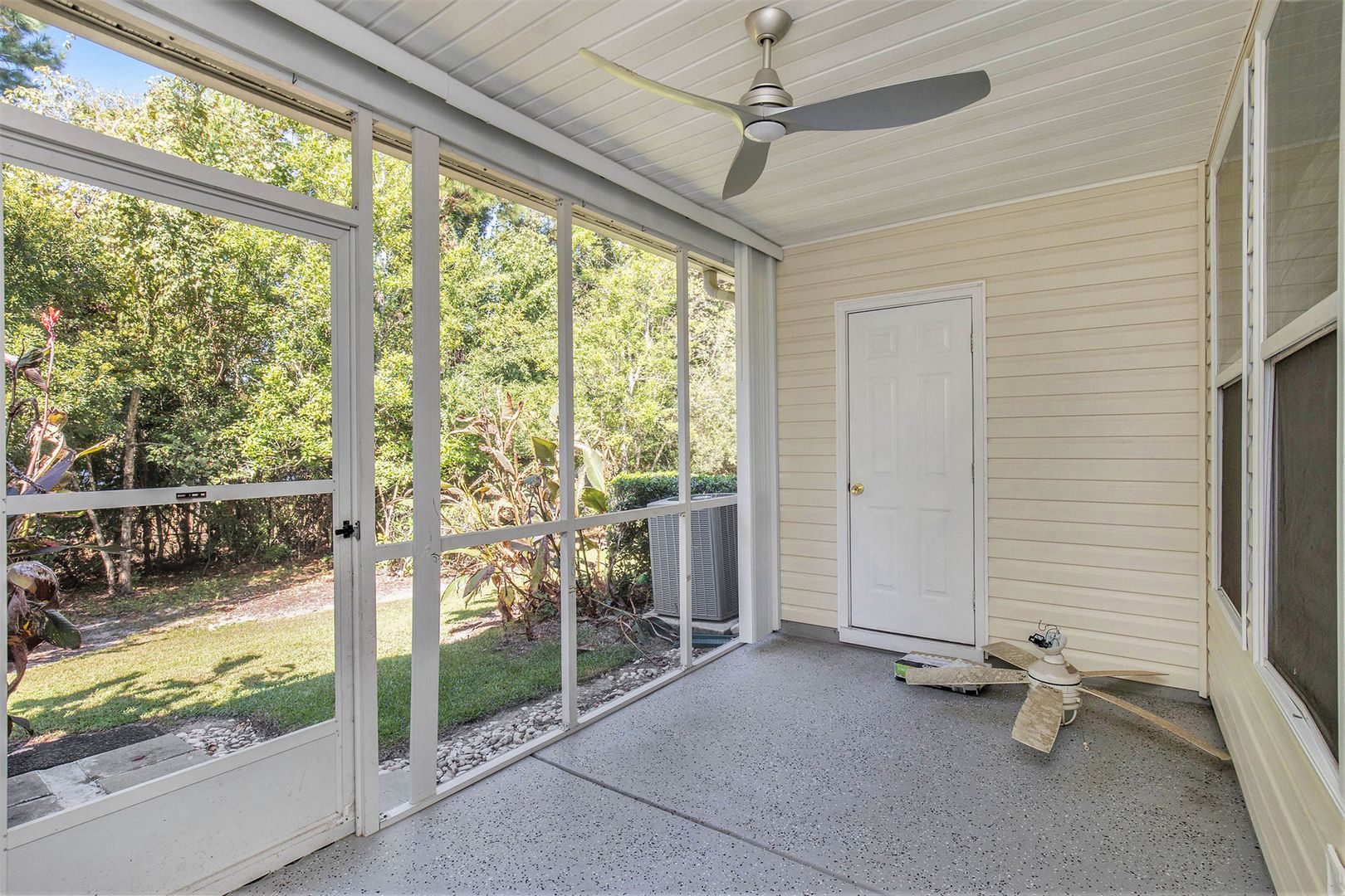 The bright, open living area showcases luxury vinyl plank flooring and a stylish ceiling fan, flowing seamlessly into a dedicated dining area, creating a warm and inviting space for relaxing or entertaining. The fully updated kitchen is a true highlight, featuring sleek stainless-steel appliances and elegant marble countertops which makes it perfect for cooking, hosting, and gathering with family and friends. Upstairs, you'll find two generously sized bedrooms, each with ample closet space and its own full bathroom, offering privacy and flexibility for family or guests. Step outside to the spacious screened-in porch which makes for an ideal spot to enjoy morning coffee or unwind in the evenings with peaceful, private views.